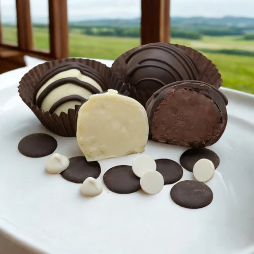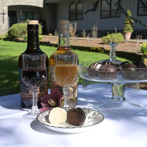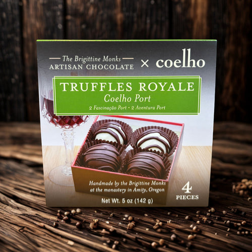 Since 1370, the Brigittine Monks have upheld a tradition of contemplative craftsmanship, and their confectionery mastery shines through in these exquisite port wine truffles. Handcrafted at their Oregon monastery, each truffle marries the monks' refined chocolate expertise with Coelho Winery's distinguished port-style dessert wines. This curated selection features two Aventura and two Fascinação varieties—sophisticated flavor profiles that demonstrate the intersection of monastic dedication and winemaking artistry. The silky, decadent centers showcase why these hand-rolled creations have earned their place in the monastery's prestigious Indulgence Line. Five ounces (four pieces) of pure indulgence awaits.