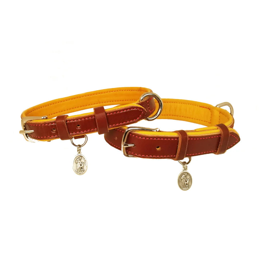 St. Dominic Leather Dog Collar with Holy Medal - Large